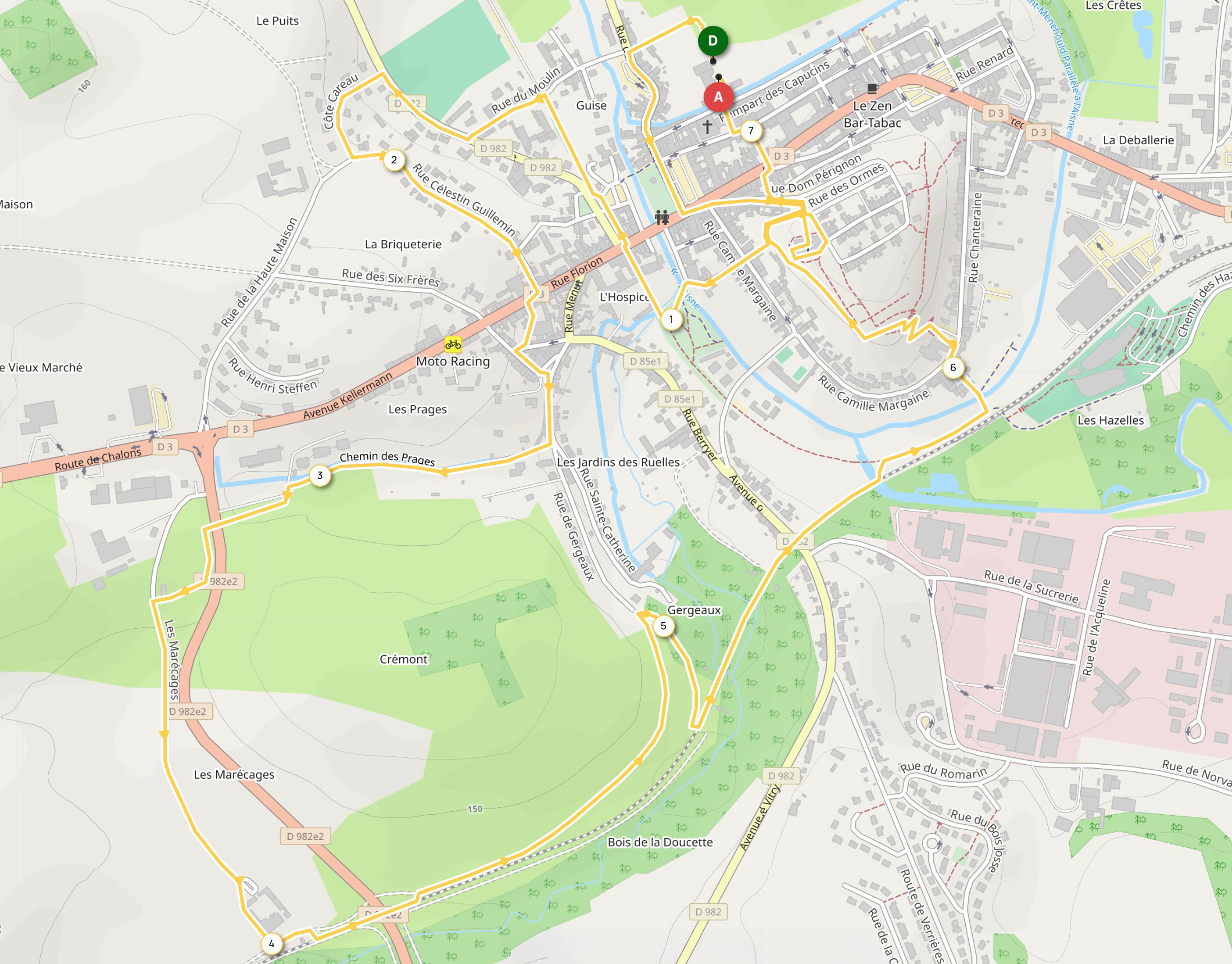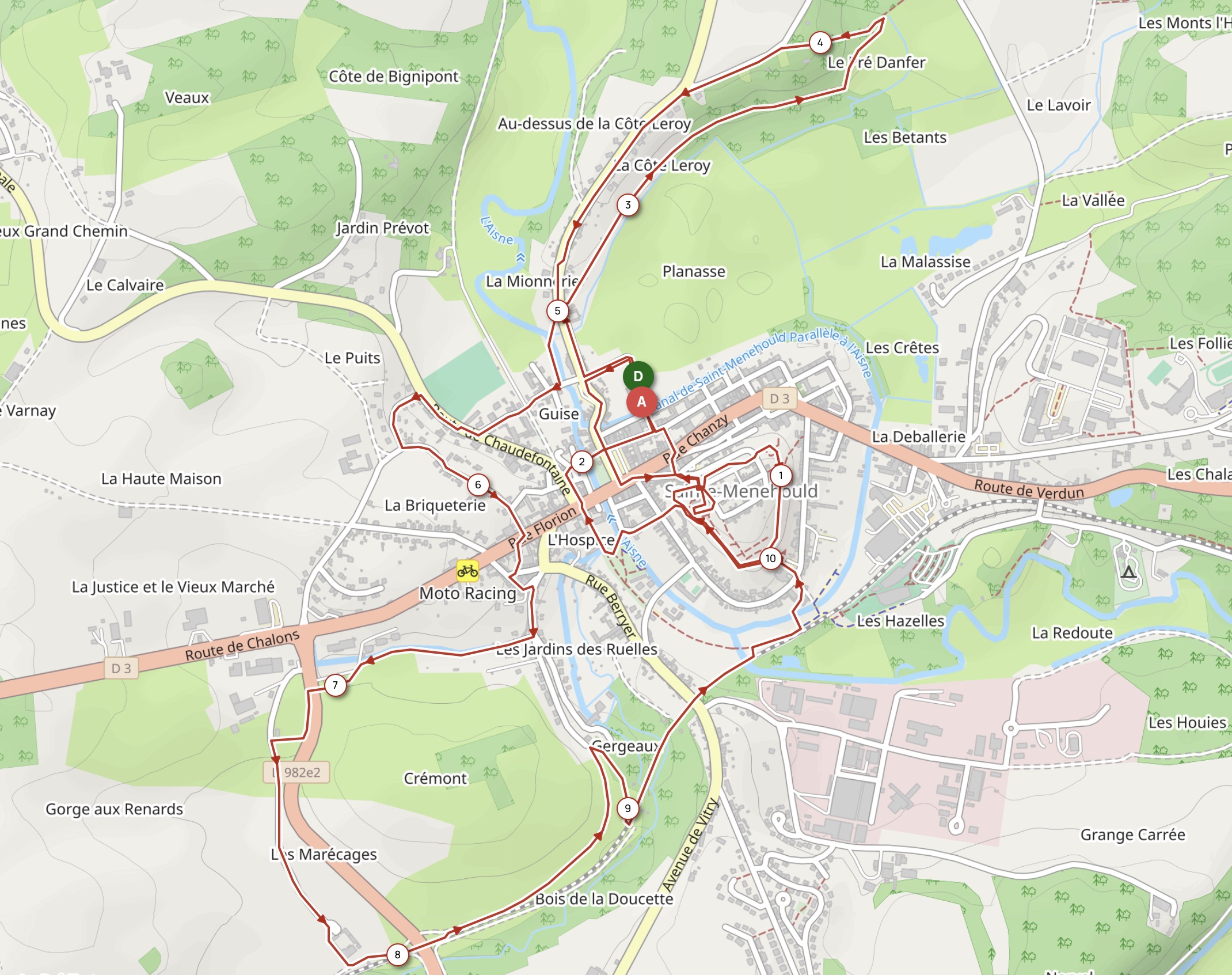 Lieu de départ et d’arrivée : à l’Isle Sainte-Marie, Rempart des Capucins à Sainte-Ménehould (51800)